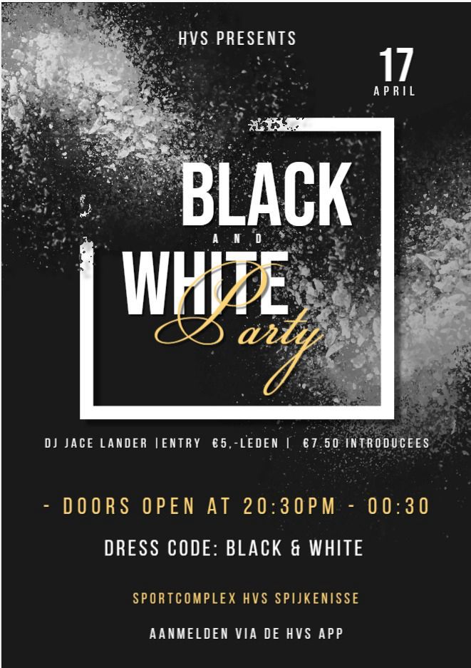 is het zover: de Black & White party op de hockeyclub! Vanaf 20:30 uur