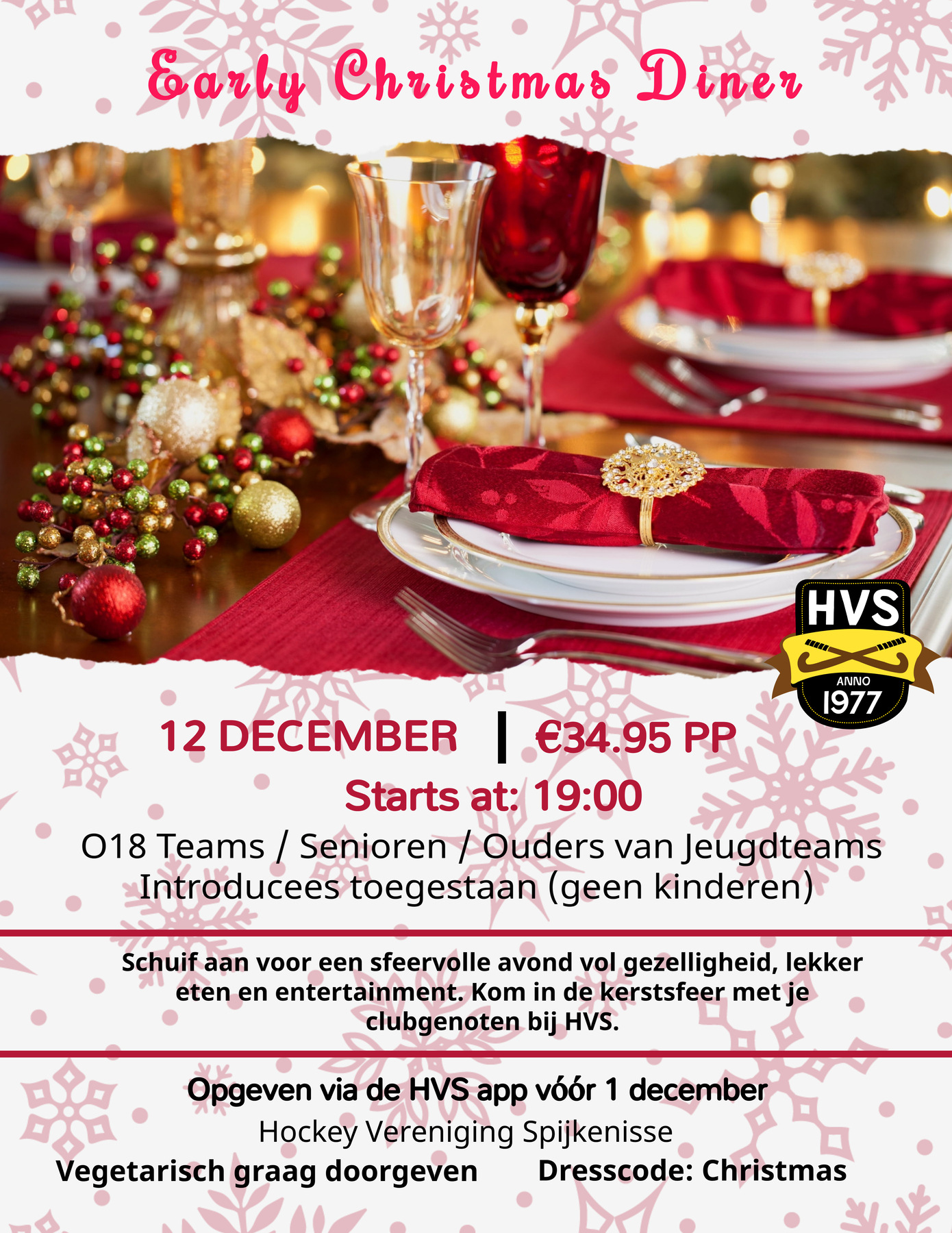 Vrijdag 12 december Early Christmas Diner